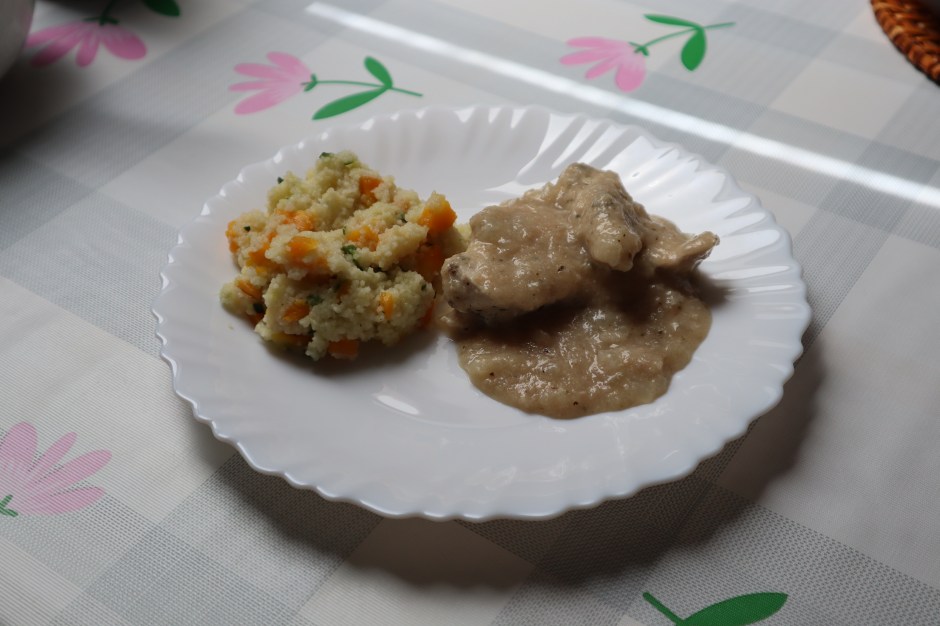 - Ko je kuskus kuhan ga postrežeš skupaj s piščancem 😉