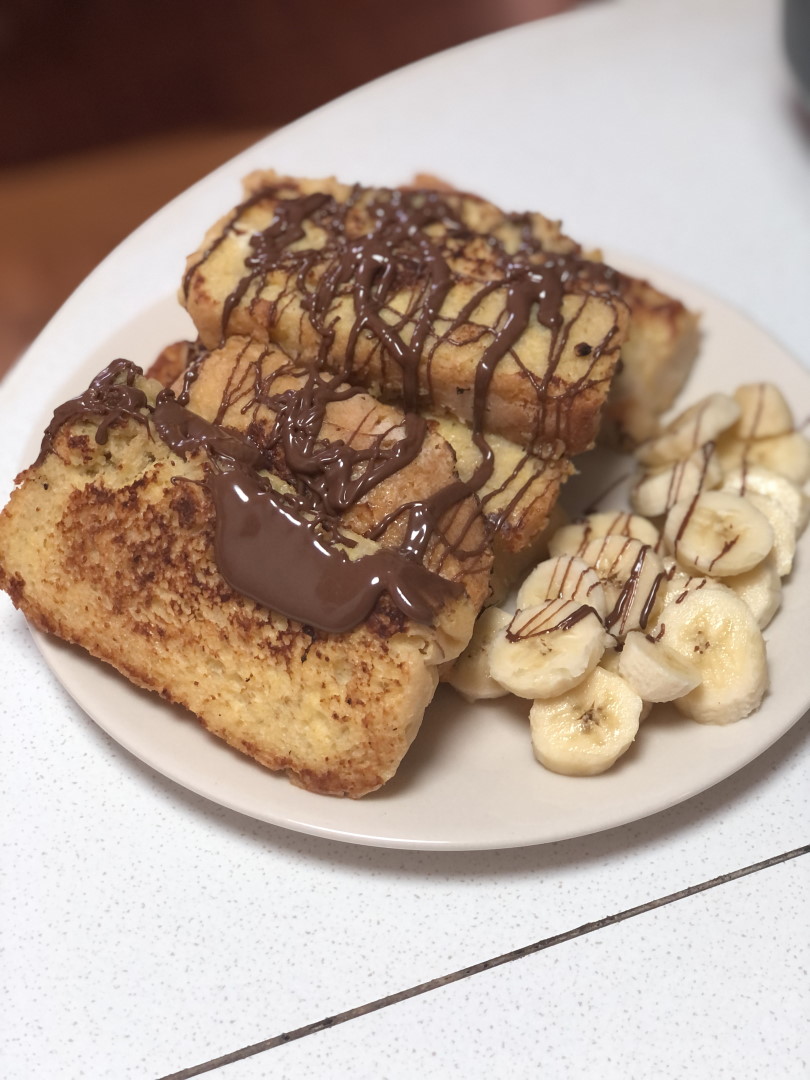 Nato v mikrovalovki segreješ čokoladni namaz in ga z žlico poliješ po šnitah in banani.