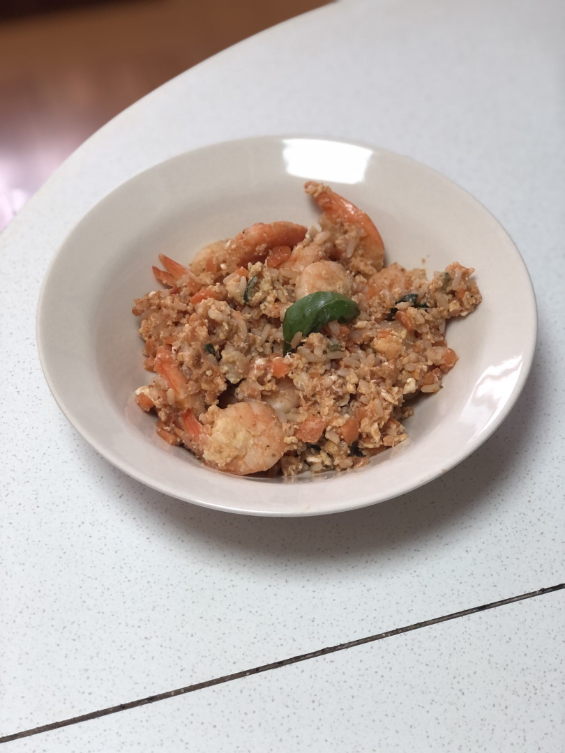 - Ko sta zelenjava in riž skuhana, vanju vmešaš eno jajce. Kozico odstaviš z ognja in njeno vsebino lepo nadevaš v pekač, ki si ga prej obložil s peki papirjem.